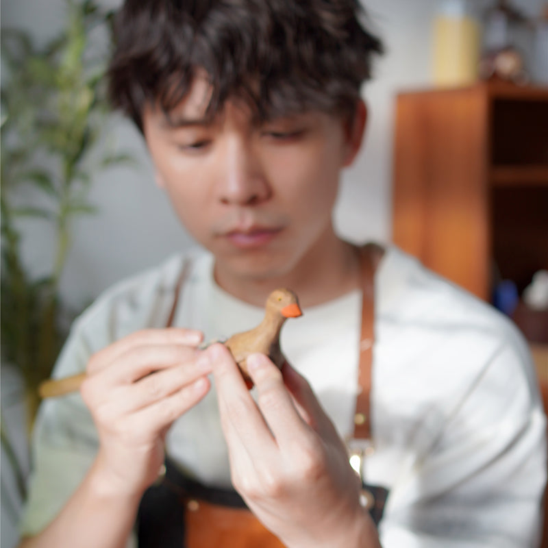 Joe grew up surrounded by wood. He leads the product design, handcrafting, and R&D in the workshop, shaping every prototype with deep care and artistry. From chiseling to sanding, every piece passes through his hands.
